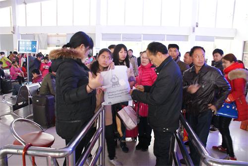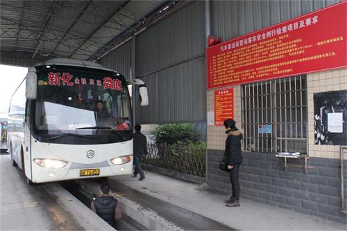 婁底汽車站工作人員認真指揮旅客接受行李過機安檢