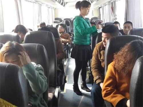 冷水江汽車站服務班員工上車檢票并檢查旅客安全帶佩戴情況