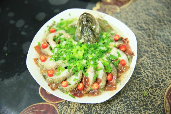 制作方法:鱸魚洗干凈,先將魚頭切下;剪掉魚鰭,從頭部開始,用刀從魚背往魚腹切到魚尾處,切忌不可切斷;將鹽和料酒制作成的混合物抹遍魚全身,腌制15分鐘備用;生姜、蔥切絲,墊在盤子底部,將腌好的魚擺出孔雀開屏的造型,魚頭放在最前面,尾巴部分也可單獨(dú)切下來,放在魚頭下方;擺好造型后,在每一塊魚肉中間夾入一小片火腿,再在魚上鋪一層姜蔥絲,冷水入鍋,大火蒸10分鐘即可出鍋;出鍋后,去掉上面的姜蔥絲,淋上一點(diǎn)生抽,再放上適量蔥末;鍋內(nèi)倒油,燒熱后淋到魚上,再放上若干紅辣椒裝飾即可。